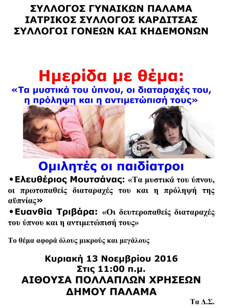 ΕΚΔΗΛΩΣΗ ΓΙΑ ΤΟΝ ΥΠΝΟ-ΚΥΡΙΑΚΗ 13 ΝΟΕΜΒΡΙΟΥ 2016